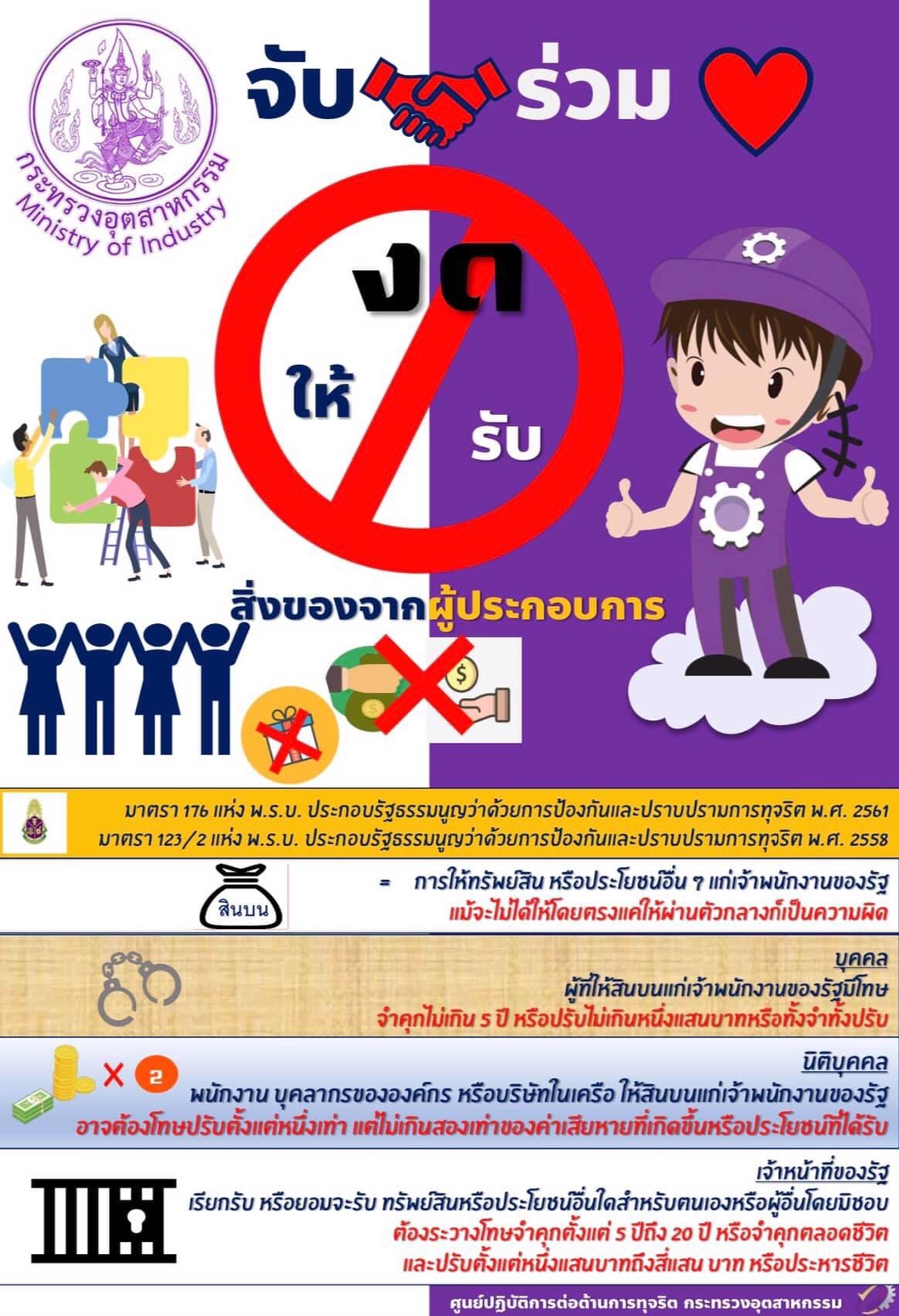 แนวปฏิบัติที่ดีในการ ไม่รับ-ไม่ให้ สิ่งของ/ผลิตภัณฑ์ จากผู้ประกอบการทุกกรณี ตามมาตรการควบคุมความเสี่ยงการทุจริตสำนักงานอุตสาหกรรมจังหวัดสระบุรี