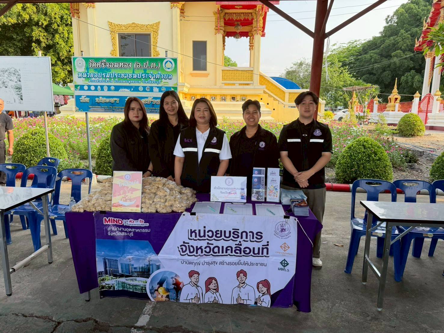นายตรีพงษ์ กลันทปุระ อุตสาหกรรมจังหวัดสระบุรี มอบหมายให้ นางมณชิรา สงวน?พรรค? หัวหน้า?กลุ่ม?ส่งเสริม?และ?พัฒนา?อุตสาหกรรม? พร้อมด้วยเจ้าหน้าที่กลุ่มส่งเสริมและพัฒนาอุตสาหกรรม ลงพื้นที่ดำเนินกิจกรรมโครงการ “หน่วยบำบัดทุกข์ บำรุงสุข สร้างรอยยิ้มให้ประชาชน” จังหวัดสระบุรี ประจำเดือนมีนาคม ปีงบประมาณ พ.ศ. 2569 ณ โรงเรียน?วัดศรีจอมทอง ตำบลห้วยป่าหวาย อำเภอพระพุทธบาท? จังหวัดสระบุรี โดยมีนายบัญชา เชาวรินทร์ ผู้ว่าราชการจังหวัดสระบุรี เป็นประธานในการดำเนินกิจกรรมโครงการฯ ซึ่งสำนักงานอุตสาหกรรมจังหวัดสระบุรี ได้มีการจัดกิจกรรมประชาสัมพันธ์ ให้คำปรึกษาแนะนำเบื้องต้นแก่ผู้ประกอบการ ในการออกแบบผลิตภัณฑ์ โลโก้ การขอรับรองมาตรฐานผลิตภัณฑ์ชุมชน (มผช.) การขอรับรองมาตรฐานอุตสาหกรรมเอส (มอก.เอส)? โดยได้รับการสนันสนุนผลิตภัณฑ์อาหารแปรรูป(ชนิดแช่แข็ง)? จาก บริษัท ซีพีเอฟ (ประเทศไทย)? จำกัด (มหาชน)